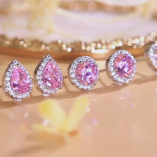 925 Sterling Silver Pink Cubic Zirconia Stud Earrings