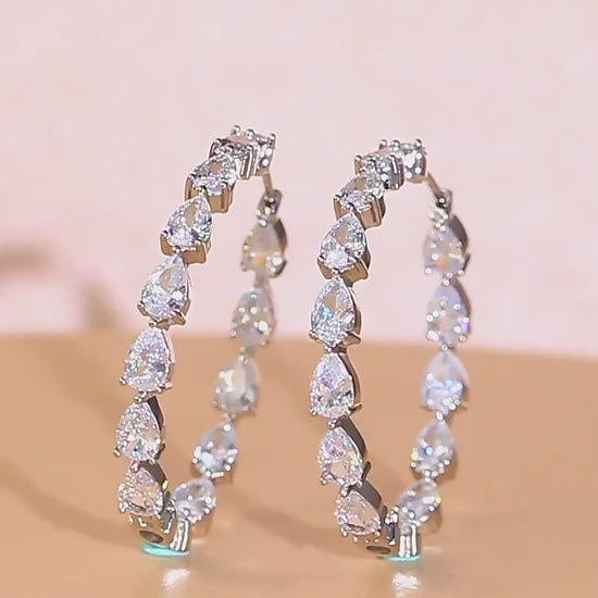 Add a touch of refined beauty to your jewelry collection with the Classic Pear Drop Hoops. Featuring a stunning pear cut cubic zirconia, these thin hoop earrings shine with delicate sophistication. Perfect for elegant banquets, parties, or a memorable wedding, these earrings embody timeless grace.