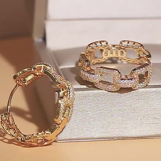 Make a statement with the Golden Cuban Hoop Earrings — an exquisite fusion of modern design and timeless luxury. Featuring micro pave cubic zirconia stones, these 18K gold-plated earrings are a perfect balance of geometric style and sparkling elegance. A must-have for any fashion-forward woman, they’ll shine at any party or special occasion.