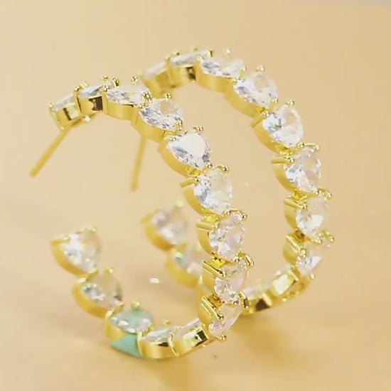 Design: Big circle hoops with sparkling heart-cut stones β bold, dazzling, and unforgettable