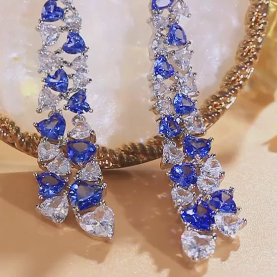 Turn heads and shine bright at every special occasion with these Luxurious Royal Blue Heart Cut Cubic Zirconia Drop Earrings. Designed to dazzle, these elegant long dangle earrings blend bold charm with refined sophistication — the perfect finishing touch for your next glamorous event.