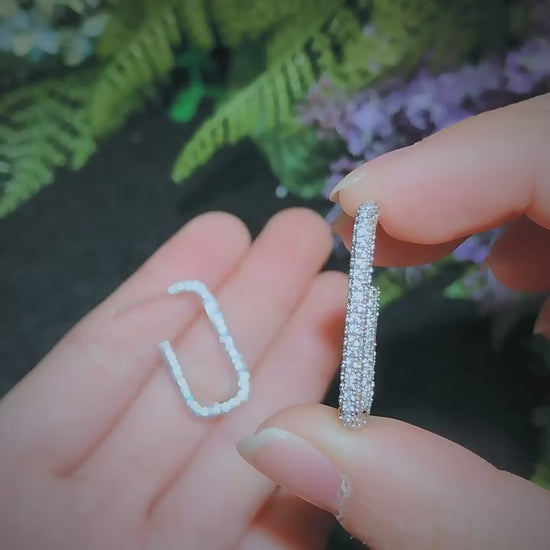 There's nothing loud here—just quiet confidence and slow-burn shine. The Whisper Loop Earrings are that perfect mix of soft mystery and sharp style: a clean U-shaped silhouette, fully micro-paved with white CZ stones that shimmer with every turn. Double-sided, silver-plated, and dainty but deliberate—these are for the girl who doesn’t need to shout to be unforgettable. Whether you're power-walking into a meeting or slow-dancing under moonlight, these hoops just get it.